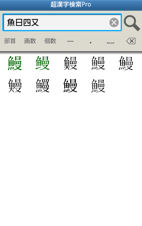 「超漢字検索Pro」なら、上のどの表現でも、検索条件として指定することができるんだ。